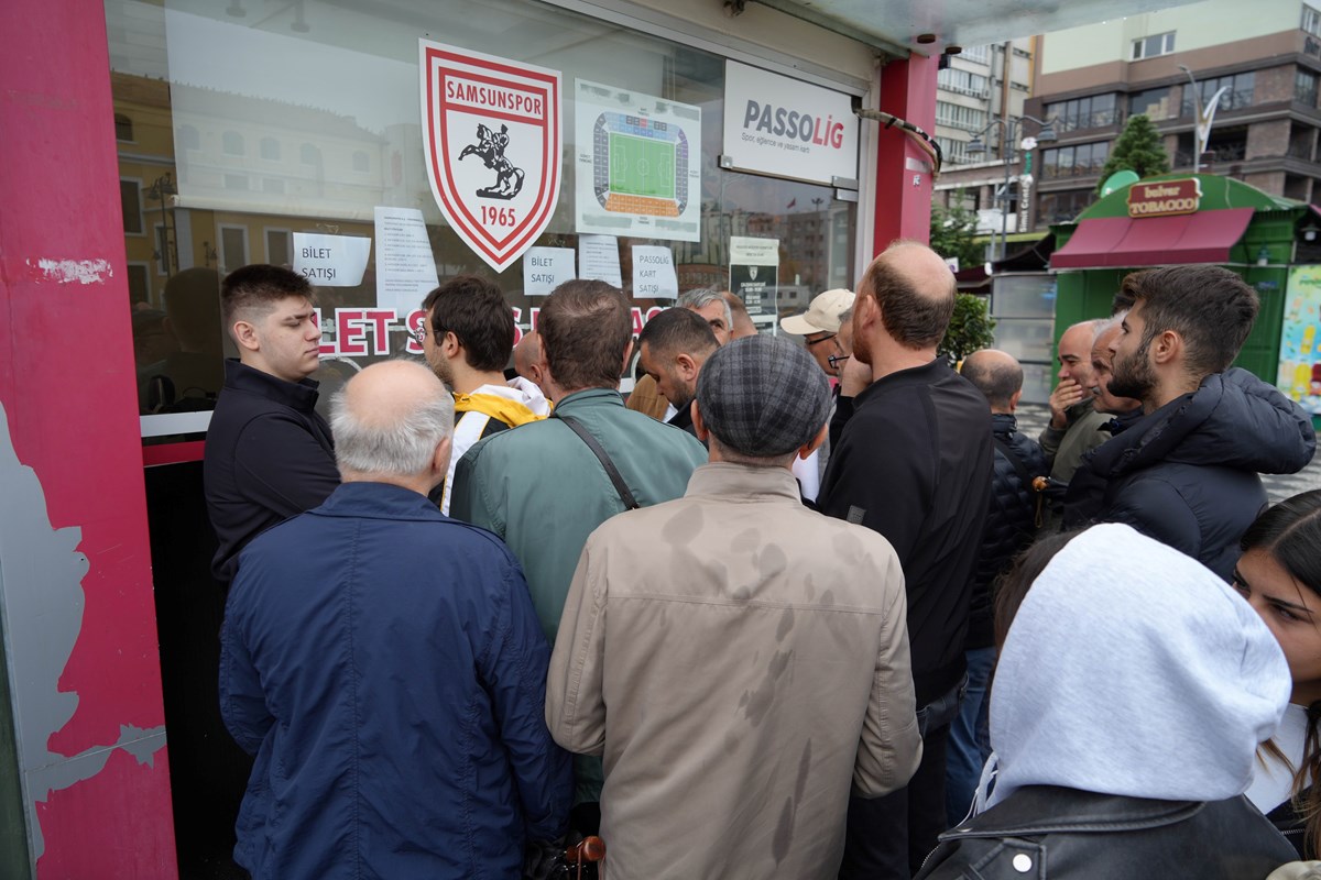Samsunlu taraftarlar, biletlerin satışa çıkmasından saatler öncesin satış noktalarında sıraya girerek bilet almaya çalıştılar.