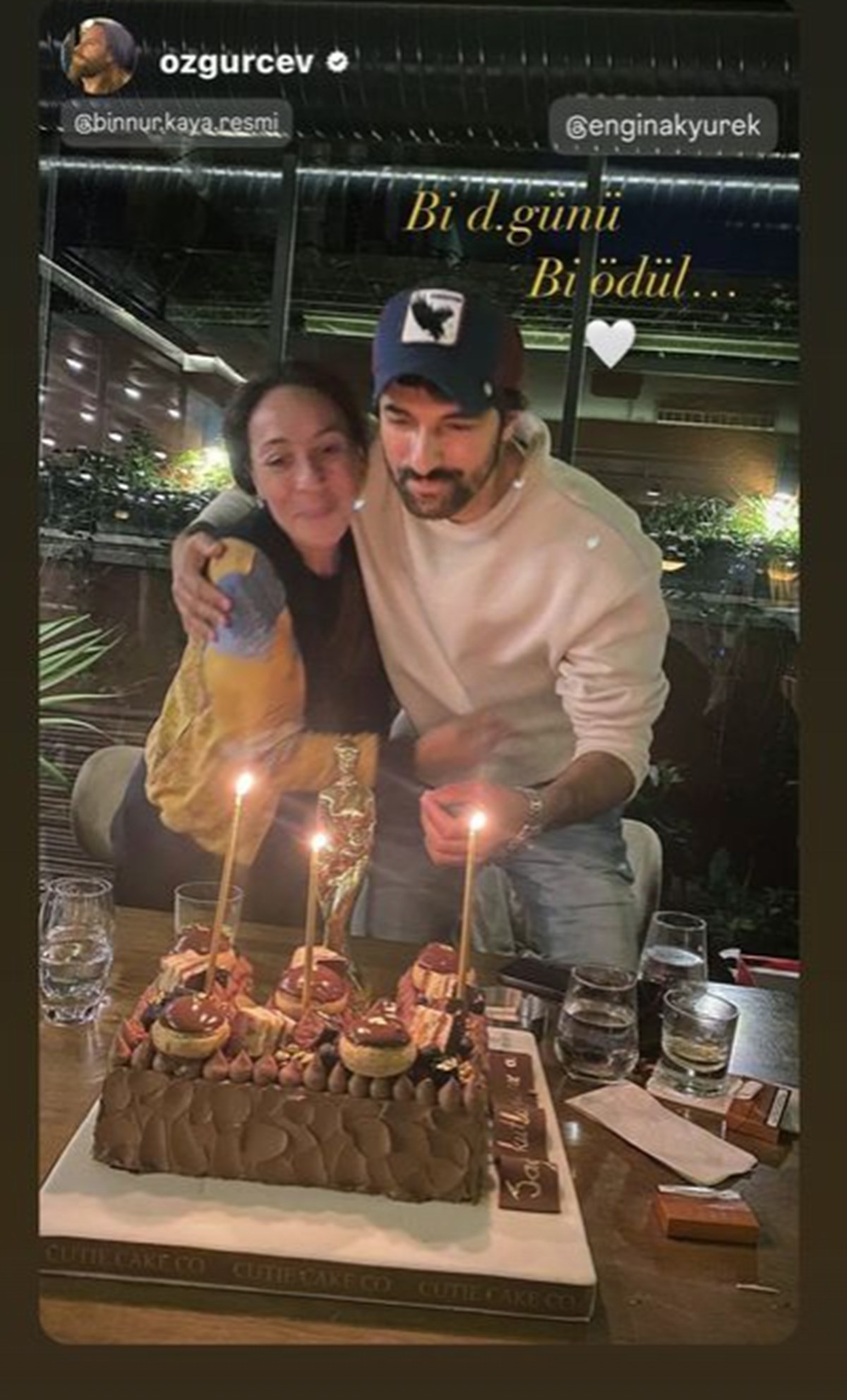Bir döneme damga vuran "Yabancı Damat" dizisinin oyuncuları, Engin Akyürek'in doğum gününde bir araya geldi.Özgür Çevik, Nehir Erdoğan, Sumru Yavrucuk, Erdal Özyağcılar ve Binnur Kaya gibi isimlerin rol aldığı Yabancı Damat dizisi, yayınlandığı döneme damga vurmuştu.Dizide "Kadir" karakterine hayat veren Engin Akyürek dün akşam doğum gününü yakın dostlarıyla kutladı.Akyürek'in doğum günü partisine Yabancı Damat dizisinden rol arkadaşları Özgür Çevik ve Binnur Kaya da katıldı.Partide hem oyuncunun doğum günü hem de Kaya'nın Altın Portakal Film Festivali'nden ödülle ayrılması kutlandı.Altın Portakal Film Festivali'nde En İyi Kadın Oyuncu Ödülü'nü Nur Sürer ve Binnur Kaya paylaştı.