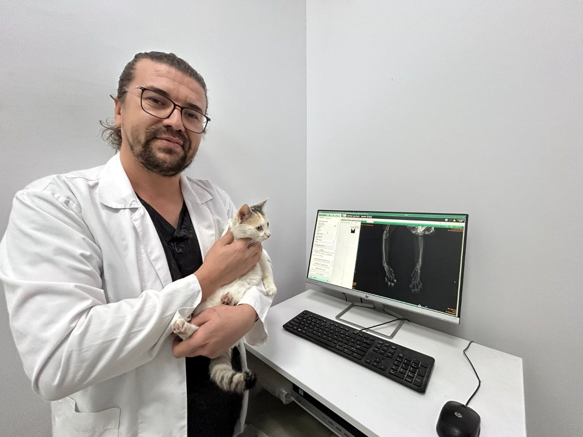 Duyarlı bir vatandaş, bir arkadaşının evinin inşaatı sırasında karşılaştığı yavru kedi ile kurduğu bağ nedeniyle 2-3 günde bir 60 kilometre yol gidip geliyor. Kedinin, kendisine iyi geldiğini anlatan vatandaş, minik yavruyu kendi elleriyle besliyor.Elazığ'da yaklaşık 5 ay önce bir arkadaşının evinin inşaatına yardım etmek için şehir merkezinden yaklaşık 30 kilometre uzaklıkta bulunan inşaat alanına giden Çağlar Karataş isimli vatandaş, burada yavru bir kedi ile karşılaştı. Birkaç defa gelip gittiği inşaat alanında karşılaştığı yavru kedi ile yakından ilgilenen Karataş ile hayvan arasında duygusal bir bağ gelişti. Karataş, evin odunluk bölümüne yerleşen yavru kediyi iki günde bir 60 kilometre yol giderek görmeye başladı. Kedi ile yakından ilgilenen Karataş, ziyaret günlerini iple çekmeye başladı.Karataş, yanında getirdiği kuru ve yaş mamalarla kediyi kendi elleriyle besliyor. Evin bahçesine girdikten sonra arabadan inmeden seslenmesinin hemen ardından barındığı odunluk kapısının önünde biten kedi, bir süre kendini sevdirdikten sonra getirilen yiyecekleri afiyetle yiyor.Doğuştan sağ ön patisi eğri olan kedinin durumuna dayanamayan Karataş, hayvanı tedavi ettirmek için kafese koyarak veterinerin yolunu tuttu. Burada muayenesi yapılan kedinin bacağında herhangi bir kırık, çıkık veya çatlama olmadığı, eğriliğin doğuştan olduğu belirlendi. Kedinin ayağının düzeltilmesi için de tedavilere başlandı.Arkadaşı ile inşaat yaptıklarını ve kediyle burada tanıştıklarını belirten Karataş, şunları söyledi: "Arkadaşımız ile burada bir inşaat yapıyorduk. Arkadaşımın kızı görmüştü. Duvarların arkasından miyavlamaya başladı. O gün süt ile su verdik. Ertesi gün ufak işler vardı, geldiğimde kedinin burada olduğunu fark ettim, sanki bizi bekliyor gibiydi. Kendisiyle ilgilendim, sütünü suyunu verdim. Sonraki günlerde birer yaş mama alarak gelmeye başladım. Yaş mamayı çok seviyor kediler. Sonrasında aramızda bir bağ gelişti.''''Küçüktü biraz, ayağında bir problem varmış gibi hissettik ama tam detaylandıramadık. Büyüdükçe daha da fark edilir oldu. Bugün de bir veteriner hekim arkadaşımıza muayeneye götüreceğiz. Bizim için de bir değişiklik oluyor. İki üç günde bir sırf kedi için de olsa 30 geliş 30 gidiş 60 kilometrelik bir yol yapıyorum ve bu durumdan da çok memnunun açıkçası.''Veteriner Ahmet Özçelik, sokakta yaşayan bu minik kedinin duyarlı vatandaşlar tarafından kliniğe getirildini söyleyerek, "Yapmış olduğumuz X-Ray görüntüleme sisteminde doğmasal bir anomali olduğunu düşünüyoruz. Çünkü herhangi bir kırık ya da çatlak saptanmadı. Destekli bandaj ile bir süre tedavi altına alacağız" diye konuştu.