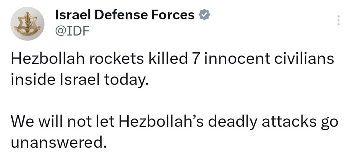 İsrail Savunma Kuvvetleri’nin (IDF) sosyal medya platformu X üzerinden yaptığı açıklamada, Hizbullah’ın roketli saldırılarında yedi sivilin hayatını kaybettiği bildirildi.
