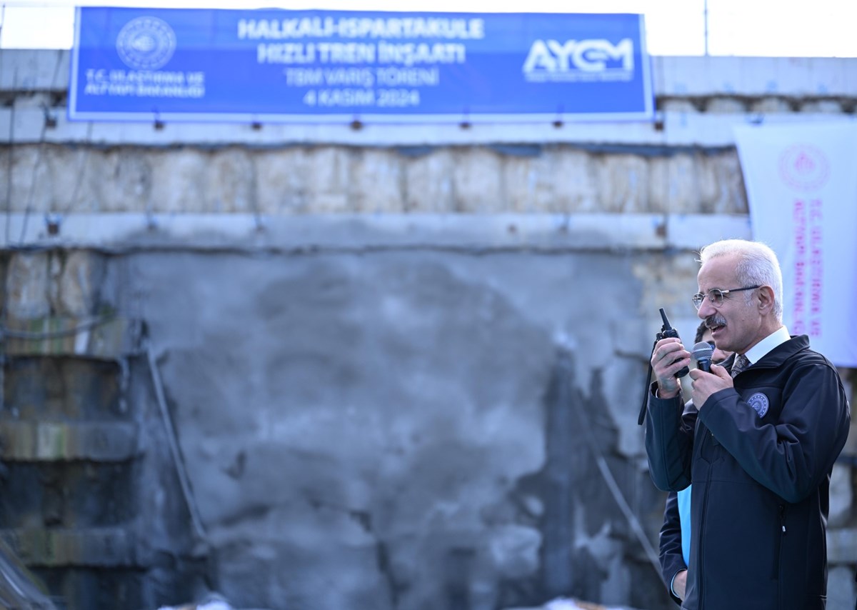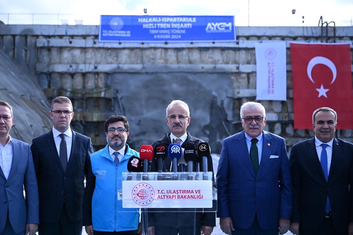 Halkalı-Ispartakule-Çerkezköy-Kapıkule Hızlı Tren Hattı’nın Halkalı-Ispartakule etabındaki TBM-1 Işık Görme Töreni’ni yapıldı. Törende konuşan Ulaştırma ve Altyapı Bakanı Abdulkadir Uraloğlu, “Bölgedeki 3,1 milyon insanımız Marmaray üzerinden Halkalı-İstanbul Havaalnı Hattı’na, Sirkeci-Kazlıçeşme Hattı’na, Söğütlüçşeme İstasyonu’nda metrobüse kadar ulaşacak.” dedi.Halkalı-Ispartakule-Çerkezköy-Kapıkule Hızlı Tren Hattı’nın Halkalı-Ispartakule etabındaki TBM-1 Işık Görme Töreni’ni yapıldı. Törene Ulaştırma ve Altyapı Bakanı Abdulkadir Uraloğlu da katıldı. Törende bir konuşma yapan Bakan Uraloğlu, “Asya ile Avrupa arasında en kısa, en güvenli ve en ekonomik koridor olarak değerlendirilen İpek Demiryolu Projesi'nin hayata geçmesi en çok önem verdiğimiz uluslararası projelerimizin başında geliyor.” dedi. Halkalı - Ispartakule - Çerkezköy - Kapıkule Hızlı Tren Hattı’nın toplam uzunluğunun 229 kilometre olduğu bilgisini paylaşan Bakan Uraloğlu, “153 kilometrelik Kapıkule-Çerkezköy etabı, 67 kilometrelik Çerkezköy-Ispartakule etabı ve şu anda birlikte bulunduğumuz 8,4 kilometrelik Ispartakule-Halkalı etabı olmak üzere 3 etaptan oluşuyor.” ifadelerini kullandı. “YÜZDE 80 ORANINDA İLERLEME KAYDETTİK” Bakan Uraloğlu, tüm etapların tamamlanmasıyla mevcut hat kapasitesini 4 kat arttırmayı hedeflediklerinin altını çizerek, şunları söyledi: “Yolcu seyahat süresinin 4 saatten 1 saat 30 dakikaya, yük taşıma süresini ise 8,5 saatten 3,5 saate düşürmeyi planlıyoruz. Bu etapta 6,4 kilometre çift tüp TBM tüneli, 634 metre uzunluğunda 2 adet aç-kapa tünel ve 1,38 kilometre açık hat olmak üzere zemin iyileştirmeleri dâhil 8,4 kilometre uzunluğunda yeni demiryolu hattının tamamının altyapı, üstyapı, elektrifikasyon, sinyalizasyon ve telekomünikasyon imalatlarını yapıyoruz. Projemiz kapsamında giriş noktası olan Halkalı kesiminde TBM portal imalatlarını tamamladık. Bugün itibariyle de TBM makinalarıyla kazıları yapılan 6,4 kilometre uzunluğundaki çift tüplü tünelimizden arkamda gördüğünüz TBM-1 Tüneli’ndeki kazı çalışmalarımızı tamamlayıp ışık görme aşamasına gelmenin mutluluğunu yaşıyoruz. TBM-2 Tünelimizin kazı çalışmalarında ise yüzde 80 oranında ilerleme kaydettik. En kısa sürede oradaki kazı çalışmalarını da bitireceğiz”