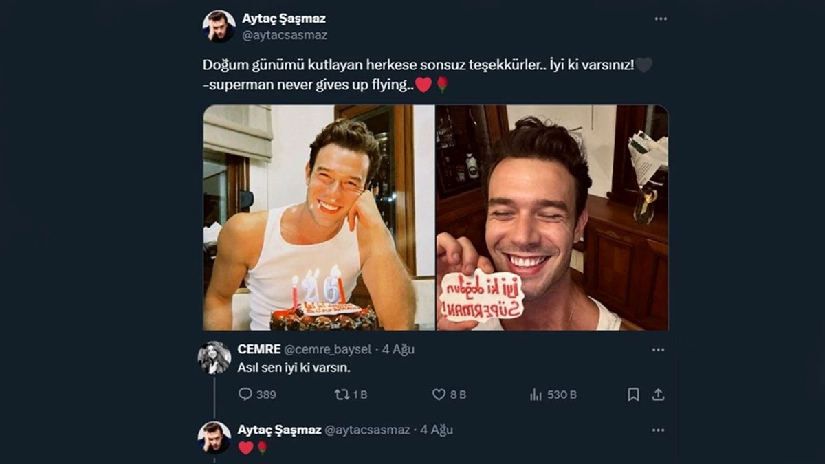 Geçtiğimiz aylarda Cemre Baysel ile ilişkilerine ikinci bir şans veren Aytaç Şaşmaz, sevgilisini görmek için sete gitti. Oyuncu çift, sürpriz ziyareti takipçileriyle paylaşmayı ihmal etmedi."Baht Oyunu" dizisinde partner olan ve zaman içinde arkadaşlıkları aşka dönüşen Cemre Baysel ile Aytaç Şaşmaz, sürpriz bir şekilde ayrılmış ve hayranlarını şaşırtmıştı.Ünlü çiftten bir buçuk yıllık ayrılık ardından ilişkilerine bir şans daha verdi.Gözlerden uzak mutlu birliktelikleri süren çiftten Aytaç Şaşmaz, şimdilerde "Leyla: Hayat… Aşk… Adalet..." adlı dizide rol alan Cemre Baysel'e sette sürpriz yaptı.O anları sosyal medya hesabından paylaşan Baysel, "Set ziyareti mi?" ifadelerini kullandı.Aytaç Şaşmaz da bu paylaşımı alıntılayarak, "Sen hep gül diye" notunu düştü.Öte yandan Aytaç Şaşmaz, 4 Ağustos'ta 26 yaşına basmıştı. X hesabı üzerinden hayranlarına teşekkür eden ünlü isim, "Doğum günümü kutlayan herkese sonsuz teşekkürler. İyi ki varsınız" ifadelerini kullanmıştı.Sevgilisinin bu sözlerine karşılıksız kalamayan Cemre Baysel ise Şaşmaz'a "Asıl sen iyi ki varsın" karşılığını vermişti.