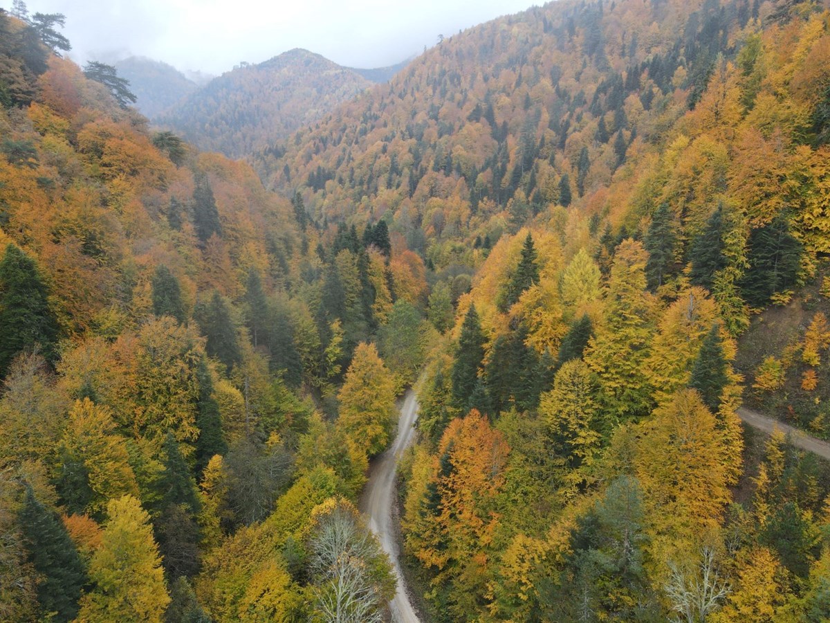 Bolu’nun doğa harikası Yedigöller Milli Parkı yolu üzerinde sonbaharın gelmesiyle sarı, turuncu ve kırmızıya bürünen yapraklar görsel şölen oluşturdu.Yedigöller Milli Parkı yolunda, sonbahar mevsiminin gelmesiyle ağaçlardaki yapraklar renkli manzaralara sahne oldu.Sonbaharda sarıya ve kırmızıya bürünen ormanlar, seyir zevki oluşturdu.Oluşan güzel manzara doğasever İlyas İşçan tarafından havadan dron ile havadan görüntülendi.Renk cümbüşünün oluştuğu ormanlar görenleri mest etti.