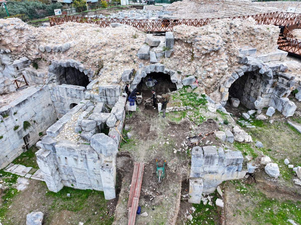 Bursa'nın İznik ilçesindeki yaklaşık 2 bin yıllık Roma tiyatrosu kazısında, bugünlere ulaşan en eski örneklerden biri olduğu belirtilen kucağında İsa'yı tutan Meryem freski restorasyonla ortaya çıkarıldı.İmparator I. Konstantin'in çağrısıyla, Hristiyanlıkta kiliseye bağlı tüm piskoposların katılımıyla 325 yılında düzenlenen, önemli dini konuların tartışılıp karara bağlandığı Birinci Konsil'in toplandığı İznik'te arkeologlar, Roma tiyatrosunun dini kullanım evresini araştırıyor. 1980'li yıllarda başlayan ve 2016'dan itibaren Dokuz Eylül Üniversitesi ekibiyle kesintisiz devam eden kazı ve restorasyonun büyük çoğunluğunun tamamlanmasıyla geçen mart ayında yeniden ziyarete açılan tiyatroda, ana yapıların dışındaki alanlarda çalışma sürüyor. Merkezi girişin doğusunda yer alan ve 2005'te tespit edilmesine rağmen korunması ve gerekli çalışmaların yapılması amacıyla kapatılan "Meryem ve çocuk İsa" freski restore edildi. Beyaz fonlu ve süslü, kıymetli renkli taşlarla işlenmiş, yüksek bir tahtta oturur şekilde Meryem ile kucağında İsa'nın yer aldığı, 1,42 metre yükseklik ve 78 santimetre genişliğindeki freskin hemen yan tarafında 1,5 metre yükseklik, 3,15 metre genişliğindeki freskte de İsa sol tarafta oturur şekilde boyun kısmının sağa, Meryem'e doğru eğilmiş olduğu görülüyor. "ANADOLU'DAKİ TEK ÖRNEK" Kazı başkanı ve Dokuz Eylül Üniversitesi Edebiyat Fakültesi Arkeoloji Bölümü Öğretim Üyesi Prof. Dr. Aygün Ekin Meriç, AA muhabirine, tiyatronun 111 yılında İmparator Trajan döneminde yapılmaya başlandığını belirtti. Trajan ile Bitinya valisi Plinius arasındaki yazışmalardan yapının inşasıyla ilgili çok önemli bilgiler edindiklerini anlatan Prof. Dr. Meriç, "İznik Roma tiyatrosu, 103 metre eninde, 80 metre boyunda, düz bir alana tamamen tonoz mimarisiyle yükseltilmiş olmasıyla Anadolu'daki tek örnek. Özgün halinde 3 katlı ve tonoz sistemiyle 24 metre yükseklikte yapılmış ve 10 bin kişilik bir tiyatro. Tonoz mimarisiyle inşa edilmiş olmasıyla çok gösterişli bir yapı." dedi. Meriç, yapının 2. yüzyıldan 17. yüzyıla kadar kullanılmasıyla çok evreli bir özelliğe sahip olduğunu ifade etti. Tiyatronun özellikle 2. ve 3. yüzyıllarda özgün işlevinde kullanıldığını, gladyatör oyunları ve dönemin moda oyunlarının gerçekleştirildiği bir yapı olduğunu aktaran Meriç, şu bilgileri verdi: "İznik'te 325 yılında ekümenik konsil toplanıyor; Hristiyanlığın çok önemli kararlarının alındığı bir toplantı. Bu dönemden sonra yavaş yavaş buralarda artık dini kullanım evresi oluşmaya başlıyor. Tiyatro özellikle 4. ila 6. yüzyıllarda dini kullanım evresi geçirmiş. Bununla ilgili çok önemli verilerimiz var. Özellikle duvarlarına yapılmış haç freskleri, girlandlar (askı çelenk), Hristiyanlık sembolleriyle yapılmış freskler... Özellikle 2005 yılında Bedri Yalman hoca tarafından tespit edilmiş duvarlarındaki Meryem İsa freski. Bu dönemde Bedri hoca korunamayacağını düşünerek kapatmıştı. Biz burayı tekrar açtık, gün yüzüne çıkardık." Meriç, Katoliklerin ruhani lideri ve Vatikan Devlet Başkanı Papa Franciscus'un katılacağını açıkladığı, 2025'te Birinci Konsil'in 1700. yılı törenlerinde bu tiyatronun ziyaret edilebileceğini vurguladı. Freskin Hristiyanlık alemi için önemine dikkati çeken Meriç, "Kucağında İsa ile tahtında oturan Meryem'in olduğu en erken fresk örneği; onun için çok önemli. Bununla ilgili gerekli korumaları yaptık. Ortaya çıkardığımızda bu halde değildi, bazı bozulmalar olmuştu. Onların hepsini temizledik, sağlamlaştırdık. Aralarda dökülmüş sıvaları da sağlamlaştırdık." ifadesini kullandı.