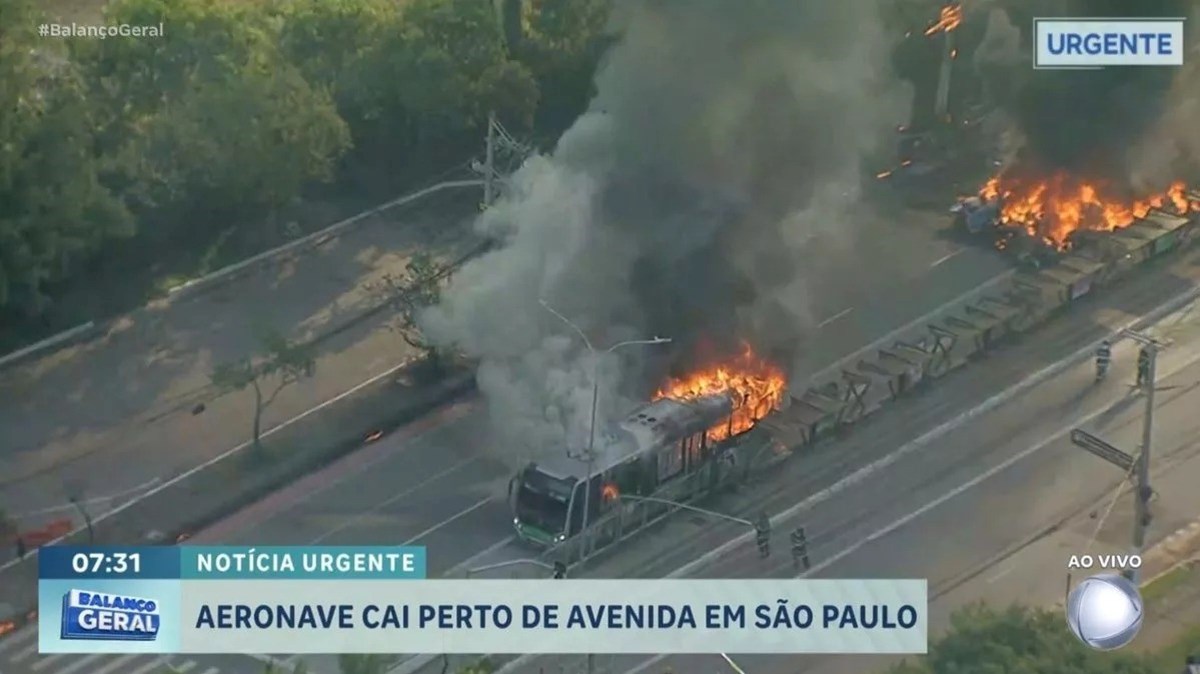 İlk belirlemelere göre uçağın caddede bulunan bir otobüse çarptığı aktarıldı. Televizyon görüntülerinde kazanın ardından yangın çıktığı görülüyor.
