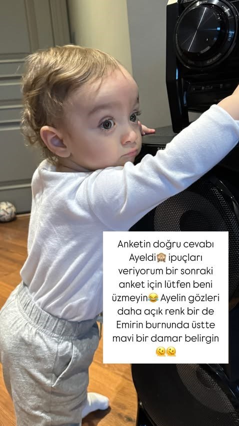 Ünlü fenomen, anket sonucuyla ilgili gönderisine ''Anketin doğru cevabı Ayel'di. İpuçları veriyorum bir sonraki anket için lütfen beni üzmeyin. Ayel'in gözleri daha açık renk bir de Emir'in burnunda üstte mavi bir damar belirgin'' notunu düştü.
