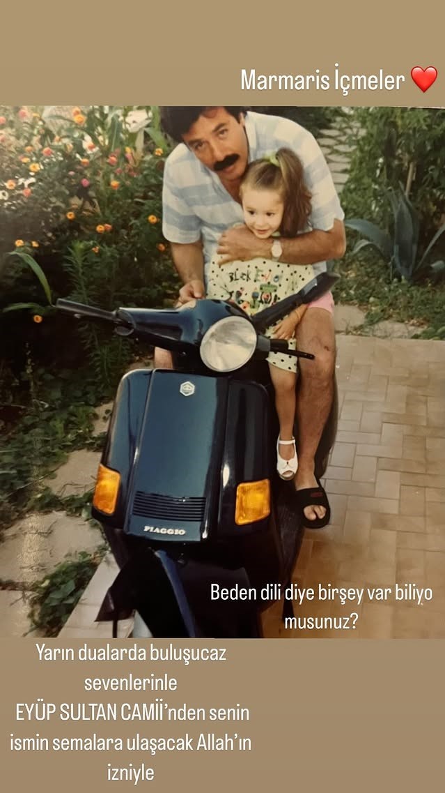 Ferdi Tayfur'un kızı Tuğçe Tayfur, sosyal medya hesabında mevlit hakkında paylaşım yaptı. Sanatçı ile yıllar önce Marmaris'te çekilen bir karesini paylaşan Tayfur şu notu düştü: