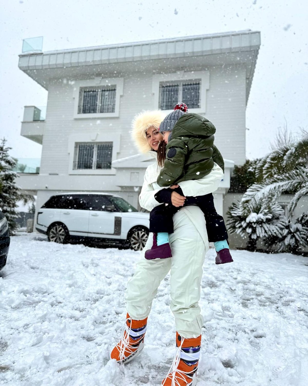 Her paylaşımıyla gündem olan Fahriye Evcen kar pozlarını takipçilerinin beğenisine sundu. Özçivit ailesinin fotoğrafları çok konuşuldu.