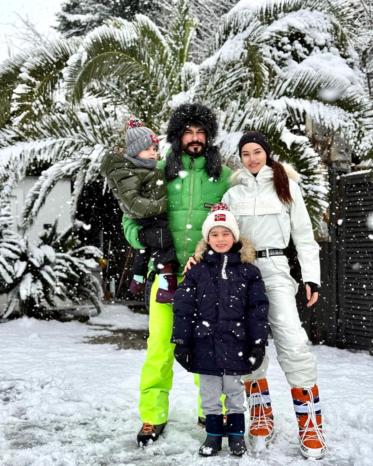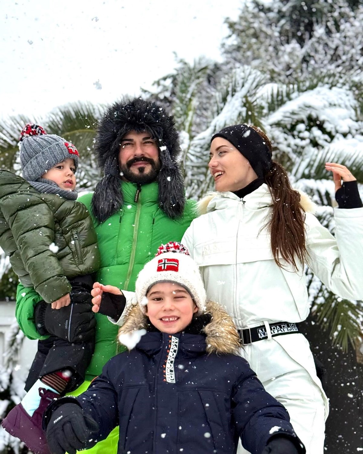 Fahriye Evcen ile Burak Özçivit karın keyfini çıkardı! Aile pozları gündem oldu