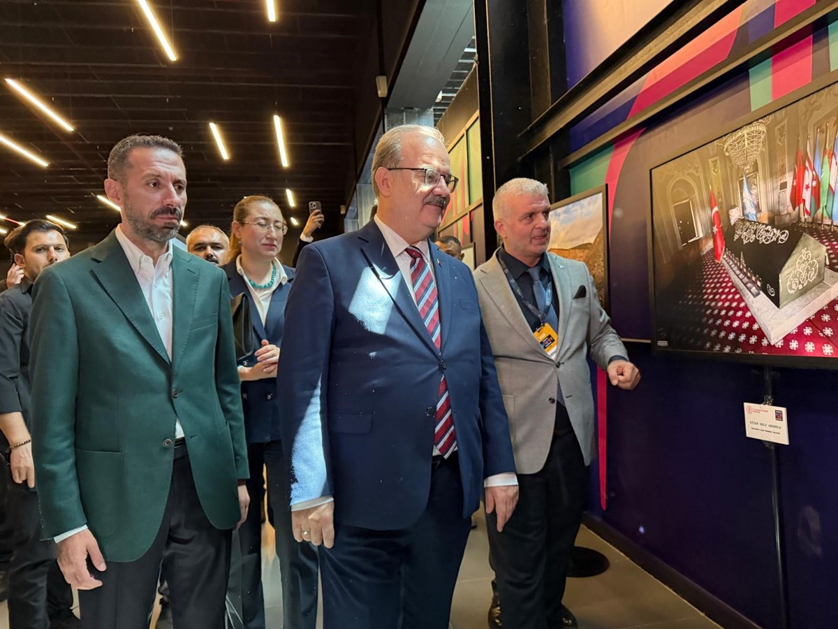 VAN 300 ETKİNLİKLE SANATA DOYACAK Festivalin açılış töreninin ardından Kültür ve Turizm Bakan Yardımcısı Serdar Çam, Türkiye Kültür Yolu Festival Direktörü Selim Terzi ve ziyaretçiler, Van Müzesi’nde yer alan sanat sergilerini gezdi. Resul Çelik’in "Gizem Dolu Anadolu", İsmail Erdoğan’ın "Van Yadigârı" ve "Işık Doğudan Yükselir" sergileriyle Van’ın kültürel mirasına sanat penceresinden tanıklık edildi. Zafer Karaokay’ın "Şehzadeler Sultanlar Oyuncak Sergisi" geçmişe nostaljik bir yolculuk sunarken, Kültür Varlıkları ve Müzeler Genel Müdürlüğü’ne ait koleksiyonlardan oluşan “Kuşlar ve Şeyler”, “Kişisel Seramik”, “Van Geleneksel El Sanatları” ve “Urartudan Günümüze Kadın” sergileri sanatseverlerin beğenisine sunuldu. Ayrıca, Yaşayan Miras teması altında hazırlanan “Çorap Sergisi”, “Türkiye’nin Minyatürleri”, “Türkiye’nin Ustaları” belgesel gösterimi ve dijital hareketli minyatür uygulamaları da ziyaretçilerin beğenisini kazandı. Rıza Bey’in "Gökyüzünden Türkiye" başlıklı fotoğraf sergisi ise ziyaretçilere Türkiye’yi kuşbakışı keşfetme fırsatı verdi. TARİHİN İÇİNDE SANAT: HÜSREVPAŞA CAMİİ'NDE “ADİL-İ MUTLAK” Açılış programı, Van’ın sembolik mekânlarından Hüsrevpaşa Camii Külliyesi’nde, Ziya Kadan’ın “Adil-i Mutlak” sergisi ile devam etti. Tarihî dokunun içinde gerçekleşen bu sanat buluşması, izleyicilere unutulmaz bir atmosfer sundu.