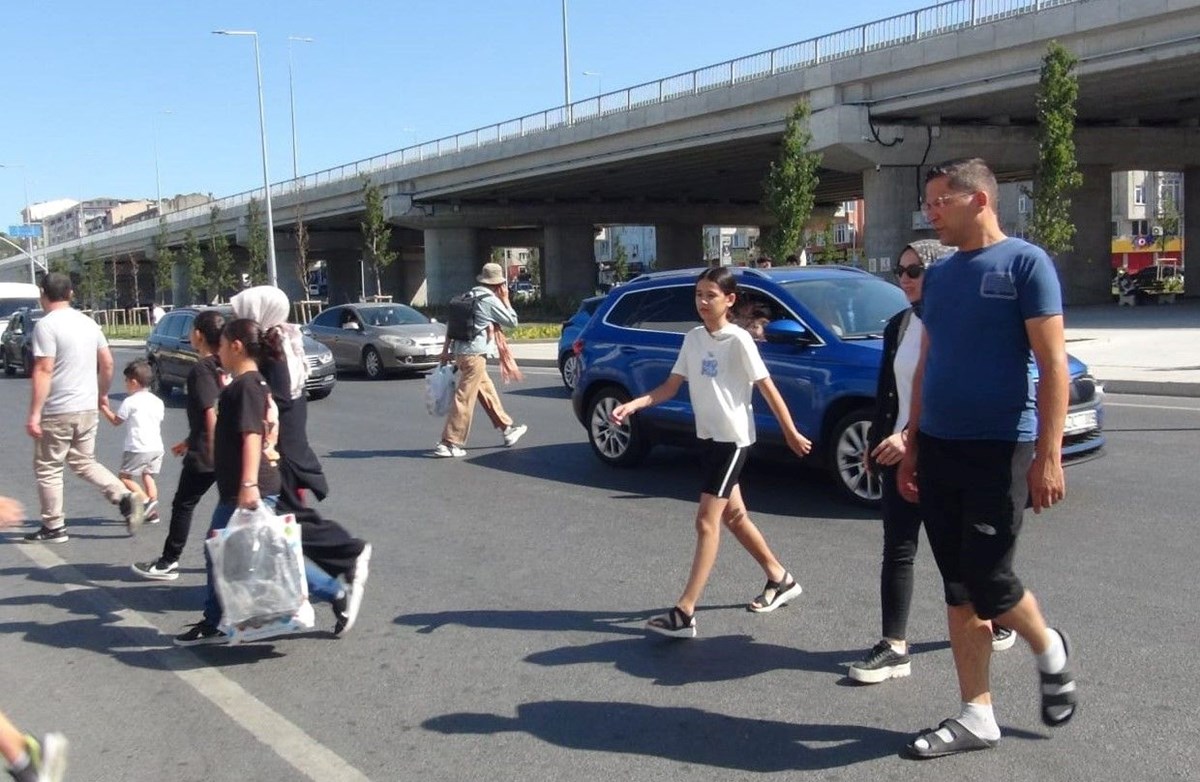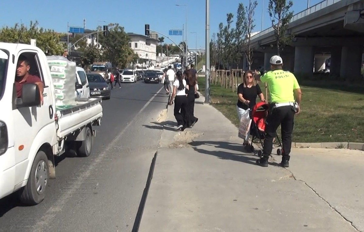 Silivri'de karayolunun hemen yanında bulunan AVM'ye gelenler, yaklaşık 30 metre uzaktaki yaya geçidini kullanmak yerine araçların arasından yolun karşısına geçmeyi tercih ediyor. Bu durum yayalar için tehlike oluştururken, trafik akışını da olumsuz etkiliyor.Silivri'de 30 metre ilerideki yaya geçidini kullanmayanlar hem kendilerini hem de trafiği tehlikeye sokuyor.D-100 yan yol, General Ali Türkkan Caddesi'ndeki alışveriş merkezine gelenler, ışıklardaki geçidi kullanmak yerine yol üzerinden karşıya geçiyor. Aralarında çocuklu ve bebek arabalı ailelerin de bulunduğu yayalar, hem kendi can güvenliklerini tehlikeye atıyor hem de sürücüleri zor durumda bırakıyor.Trafik ışıklarında bekleyen araçlar, aniden yola atlayan yayalar nedeniyle uzun kuyruklar oluşturuyor. Bu sırada yolda ilerlemeye çalışan ambulans ve itfaiye araçları da trafiğe takılarak sevk edildikleri bölgelere ulaşmakta güçlük çekiyor.Yoğun trafik nedeniyle Silivri İlçe Emniyet Müdürlüğü'ne bağlı trafik ekipleri bölgede önlem aldı. Polis, hem trafiği açmaya hem de yayaların güvenliğini sağlamaya çalıştı.Trafik polislerinin uyararak defalarca ışıklarına yönlendirdiği yayalardan bazılarının uyarılara aldırış etmediği görüldü.