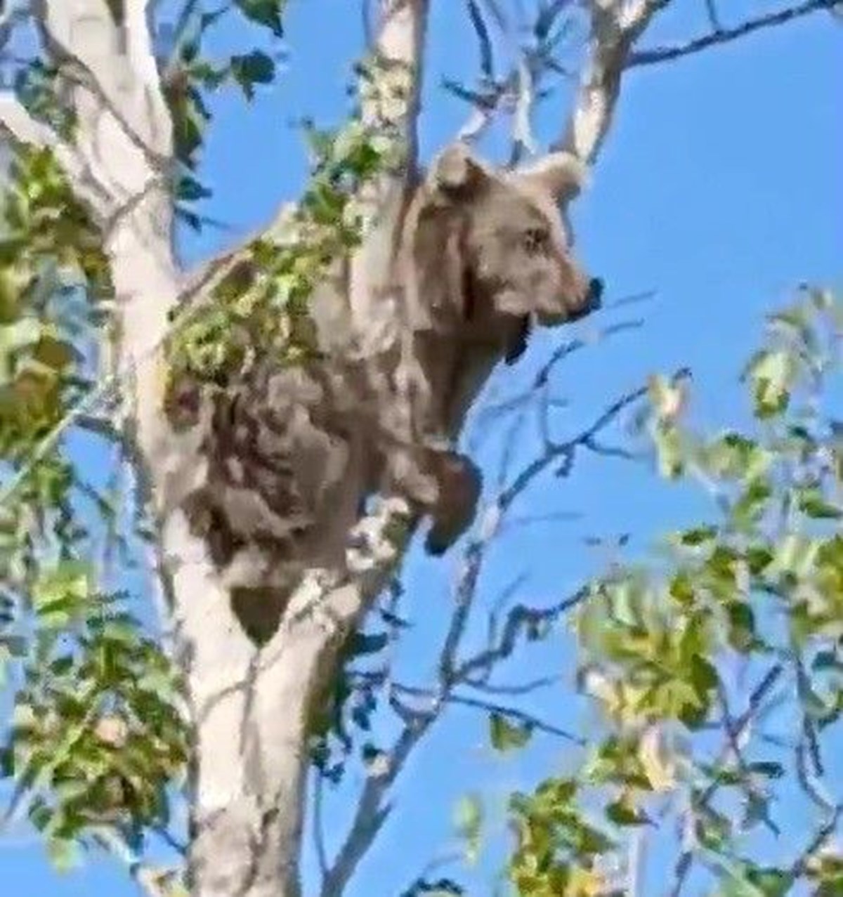 Bayburt'un Aydıntepe ilçesine bağlı Sırataşlar köyünde annesi olmadan dolaşan ve köy sakinlerini tedirgin eden yavru ayı, bu kez bir ağacın tepesinde görüldü.