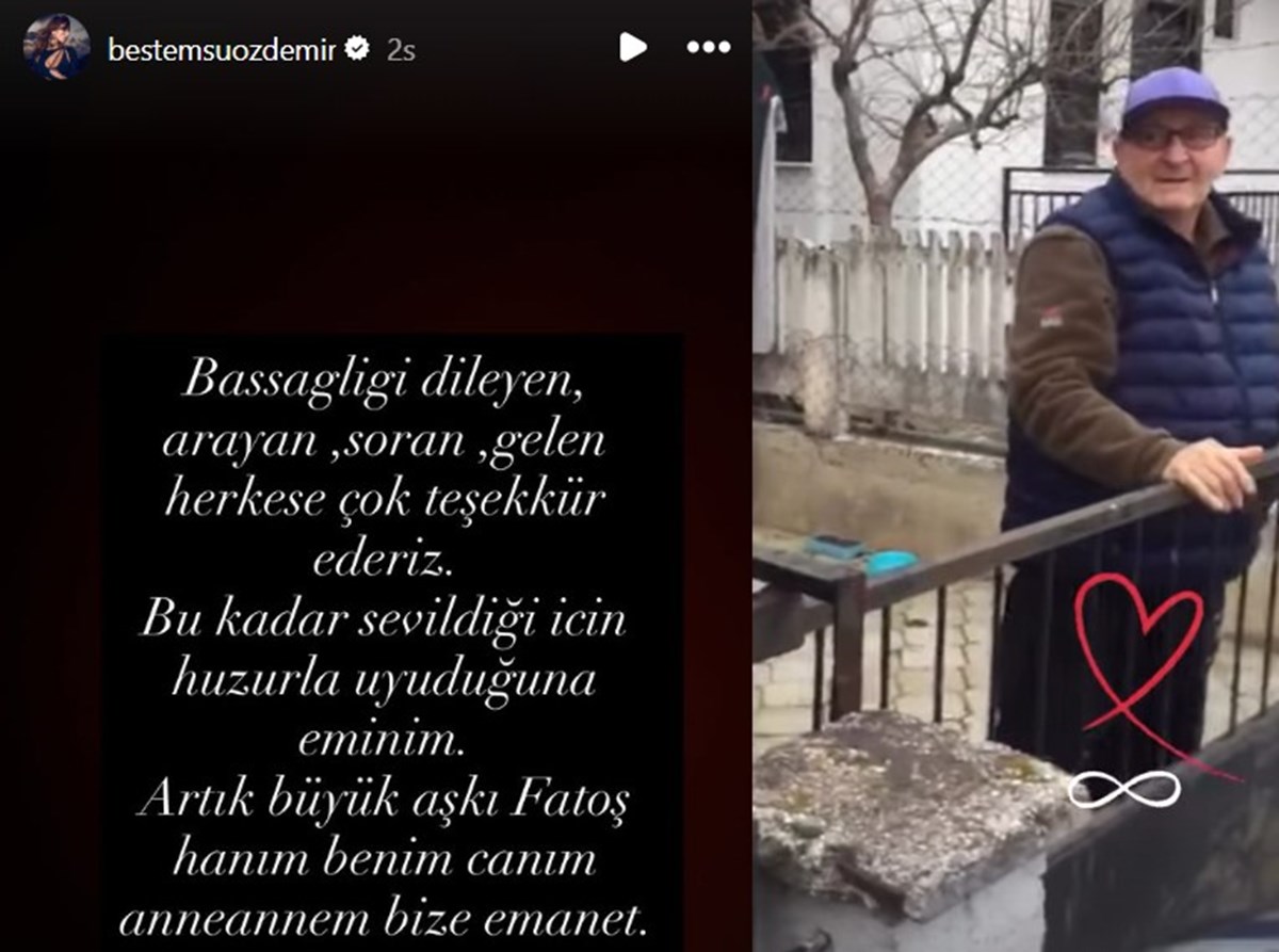 Bestemsu Özdemir'den dedesinin vefatı sonrası teşekkür paylaşımı