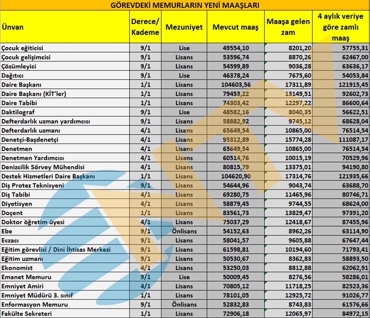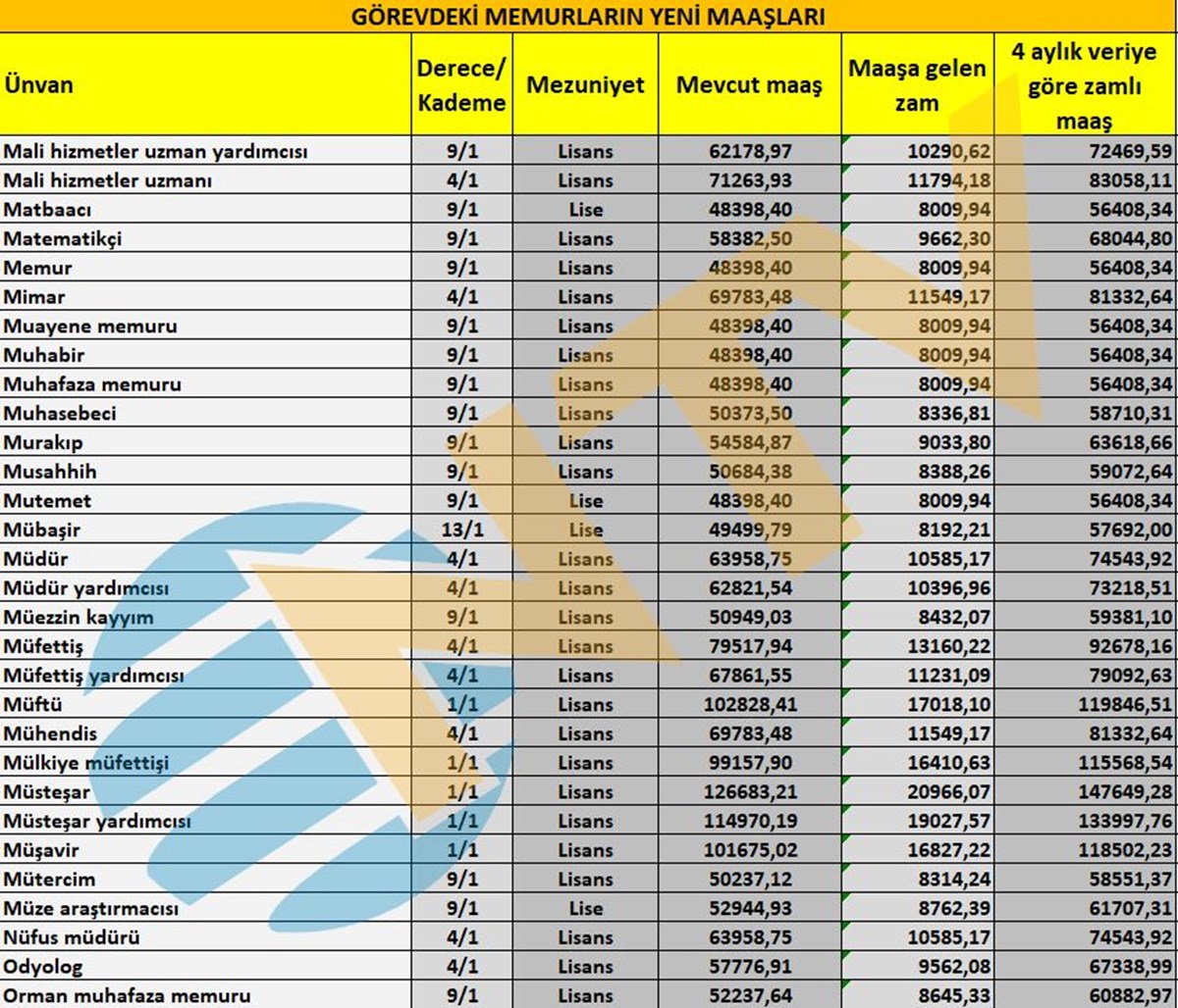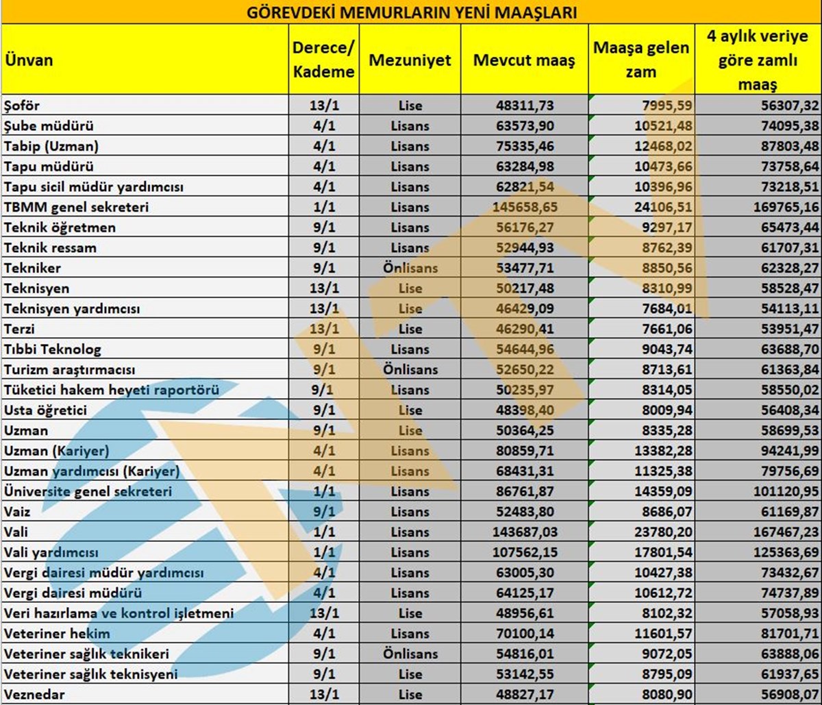 Milyonlarca çalışan memuru ilgilendiren Mayıs ayı enflasyon rakamı açıklandı ve ünvanlara göre alınacak zamlı maaşlar belirlenmiş oldu.