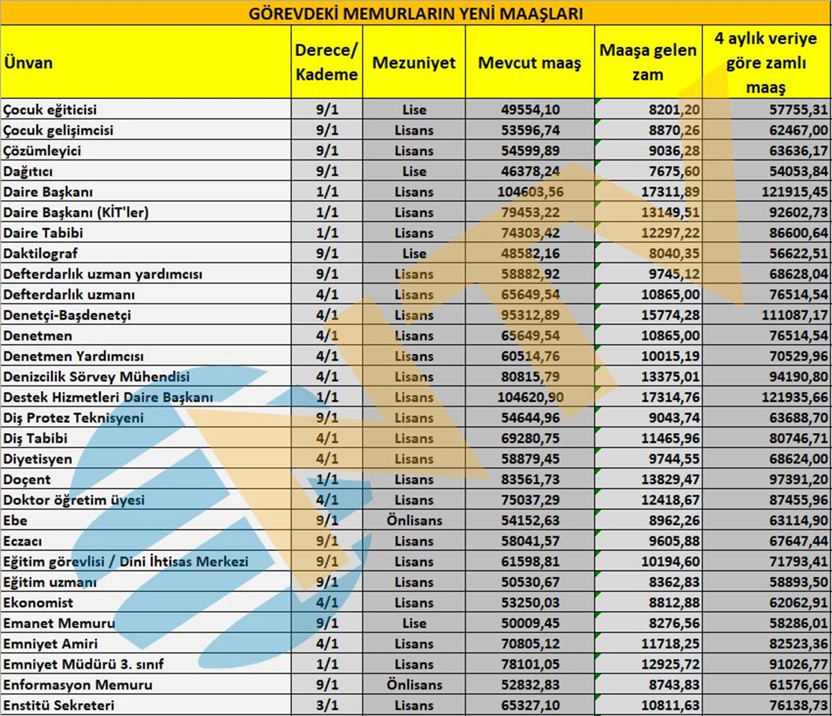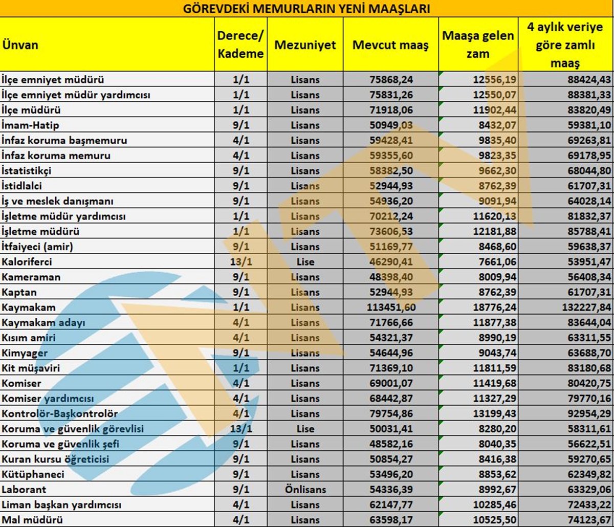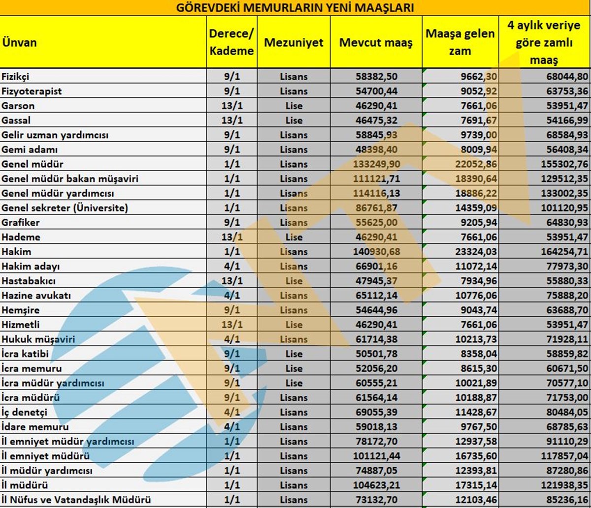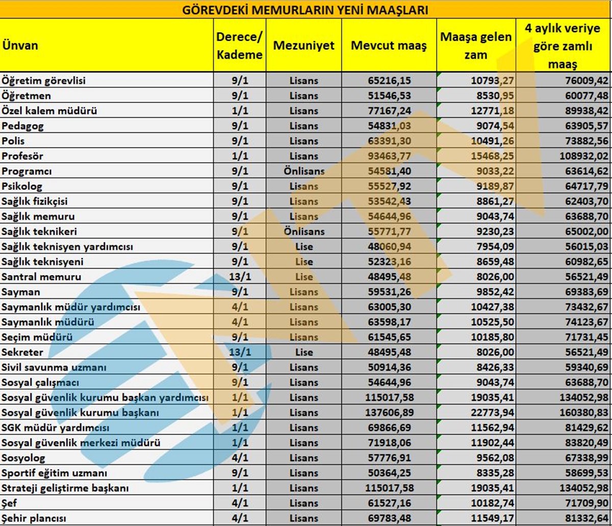 Milyonlarca çalışan memuru ilgilendiren Mayıs ayı enflasyon rakamı açıklandı ve ünvanlara göre alınacak zamlı maaşlar belirlenmiş oldu.
