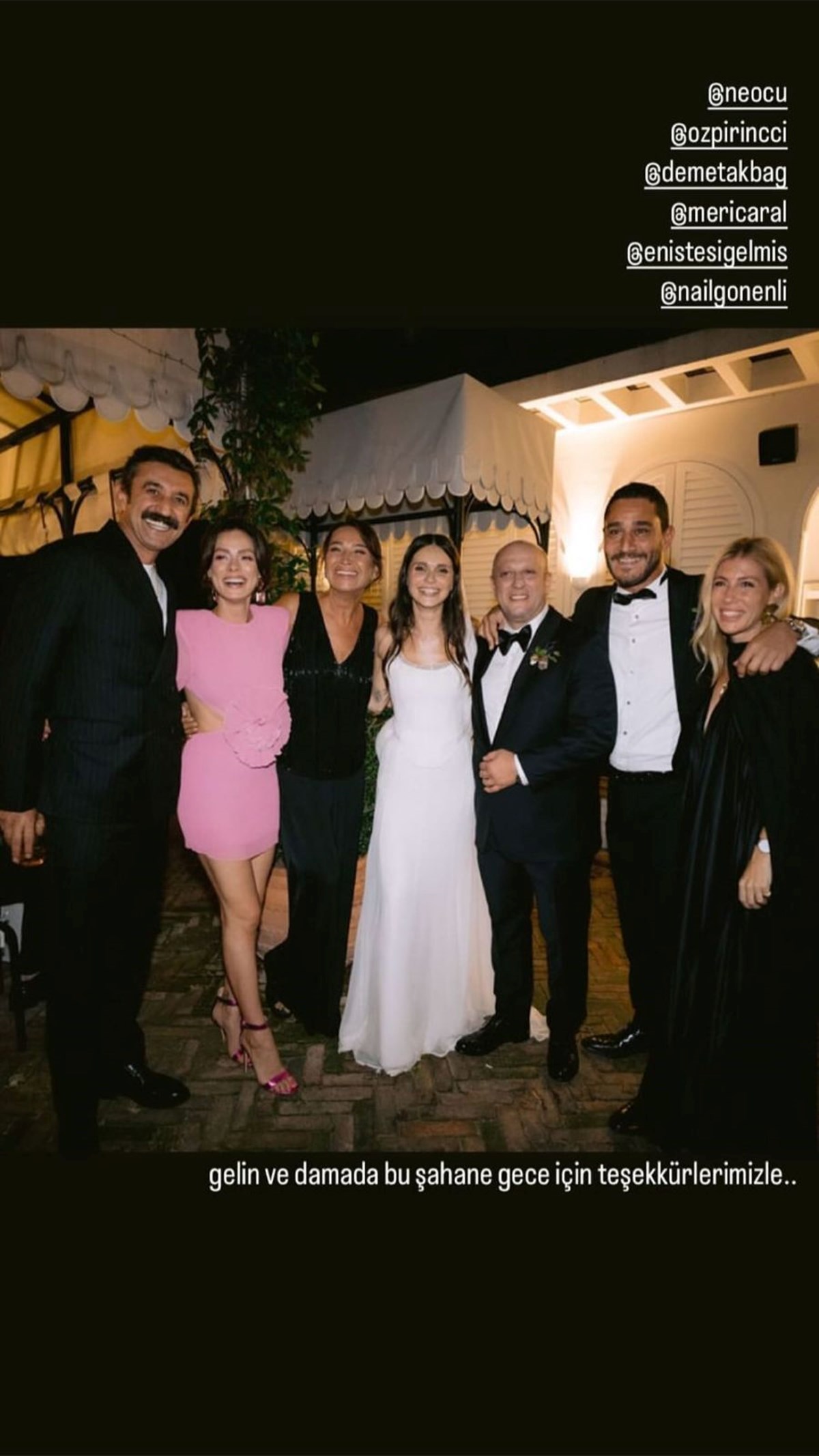 Uzun yıllardır aşk yaşayan Serkan Keskin ile meslektaşı Meriç Aral dünyaevine girdi. Birçok ünlü ismin katıldığı düğün töreninden yeni kareleri Özge Özpirinçci paylaştı.Daha önce 3 kez nikahlarını erteleyen Meriç Aral ile kendisi gibi oyucu Serkan Keskin, 19 Eylül'de dünyaevine girdi.Etiler'de bir mekanda ünlü çiftin düğününe Özge Özpirinçci, Burak Yamantürk, Hazal Kaya, Ali Atay, Bengi Apak, Sarp Apak, Demet Evgar, Kıvanç Tatlıtuğ, Başak Dizer, Barış Arduç, Birkan Sokullu, Bartu Küçükçağlayan, Taner Ölmez, Ece Çeşmioğlu, Alina Boz, Umut Evirgen gibi birçok ünlü isim katıldı.Aral ile Keskin'in düğününe eşi Burak Yamantürk ile katılan Özge Özpirinçci, geceden kareleri takipçileriyle paylaştı.Düğünde yakın dostlarıyla eğlenceli pozlar veren Özge Özpirinçci, bu karelere "MS 19.09.2024" notunu düştü.Özge Özpirinçci, gece sonu gelin Meriç Aral ve damat Serkan Keskin çekilen toplu fotoğrafı da "Gelin ve damada bu şahane gece için teşekkürlerimizle" notuyla paylaştı.Özge Özpirinçci'nin yakın dostlarının düğününden paylaştığı karelere binlerce beğeni ve "Dünya güzelleri", "Harikasınız" gibi yorumlar geldi.Öte yandan Meriç Aral, düğün öncesinde "Ben evlenme teklifi ettim. Balayına, İskoçya'ya gitmek istiyordum. Sonra İskoçya'ya gittik. İskoçya'da da Serkan, bana evlenme teklifi etti" dedi. Serkan Keskin ise evlilik teklifi hakkında "Sevgilim, bana evlilik teklif etti. Hemen kabul ettim. Çok acayip bir duyguydu. Balayı yapamayacağız, hemen işe başlayacağız" ifadelerini kullandı.