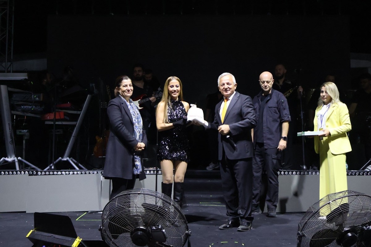 Sahnede bu sürpriz karşısında şaşıran Derya Uluğ, kendisine takdim edilen İpsala pirincini büyük bir memnuniyetle kabul etti.