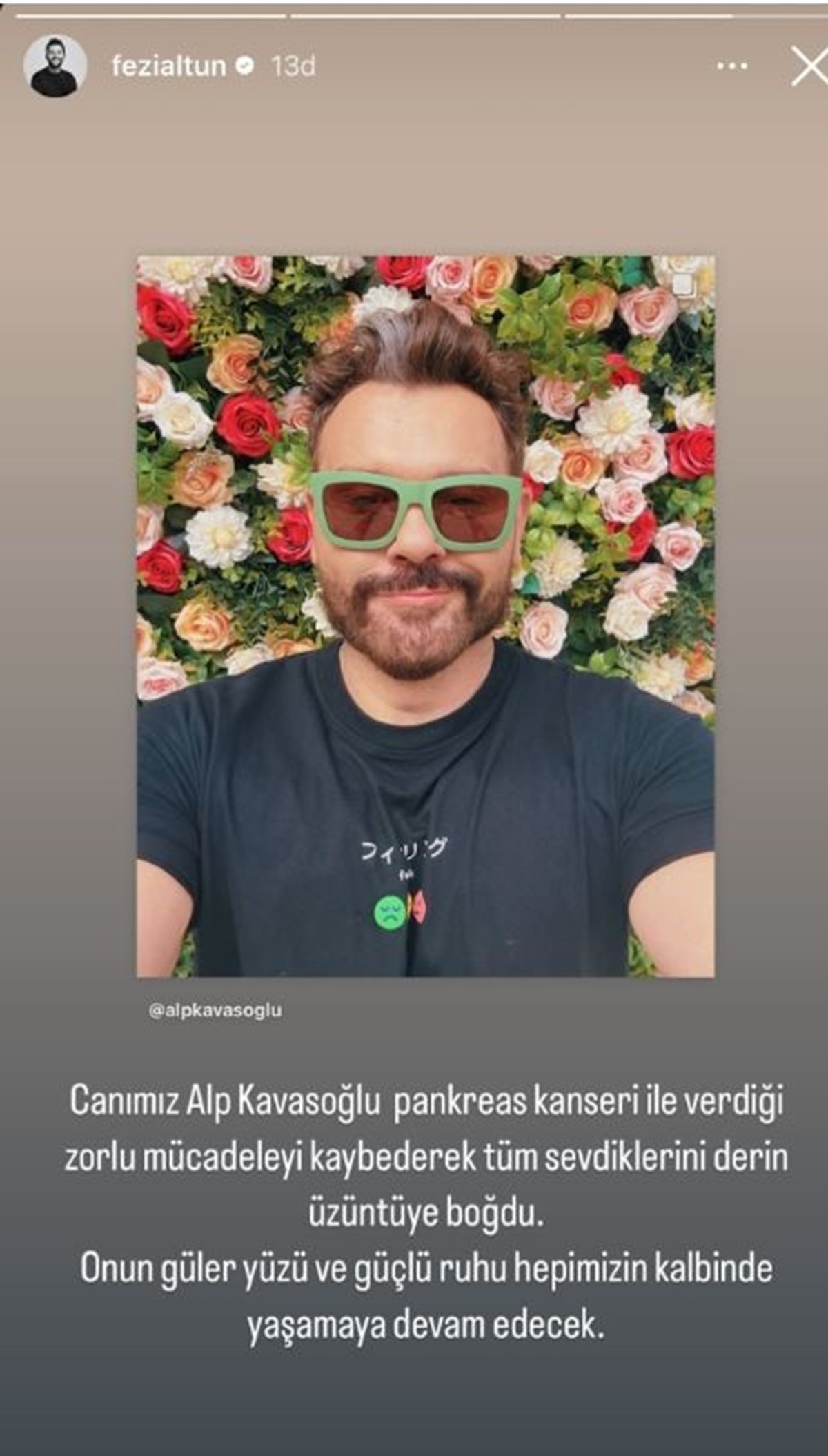 Makyaj artisti Fezi Altun, meslektaşı Alp Kavasoğlu’nun hayatını kaybettiğini duyurdu.