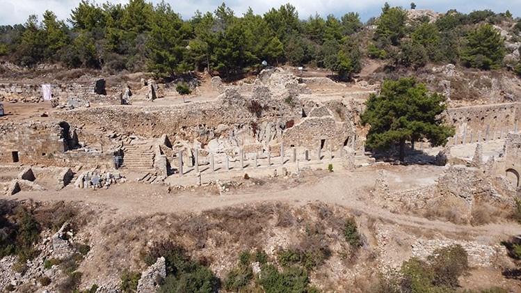 Antalya'nın Alanya ilçesindeki Syedra Antik Kenti'nde yürütülen çalışmada gün yüzüne çıkarılan yaklaşık 2 bin yıllık 46 sütun yerlerine dikildi.Seki Mahallesi'nde bulunan antik kentte, Kültür ve Turizm Bakanlığının "Geleceğe Miras Projesi" kapsamında çalışmalar sürüyor. Tarihi milattan önce 9. yüzyıla kadar gittiği belirlenen kent; tiyatro, meclis, hamam, temiz su için oluşturulmuş altyapı sistemleri, havuzlar, sarnıçlar, Sütunlu Cadde ile Kaynak ve Vaftiz isimli mağaralarıyla dikkati çekiyor.